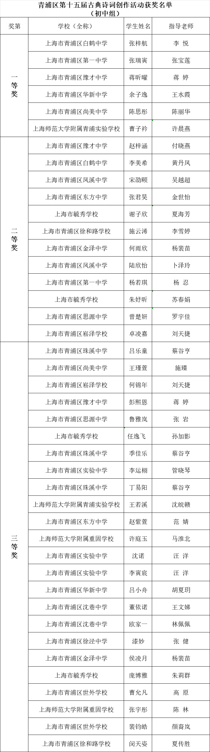 青浦区第十五届古典诗词创作活动获奖名单 |