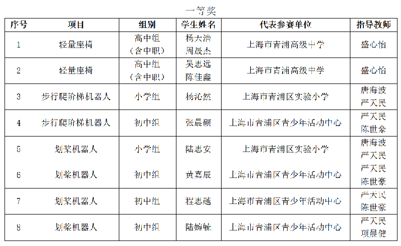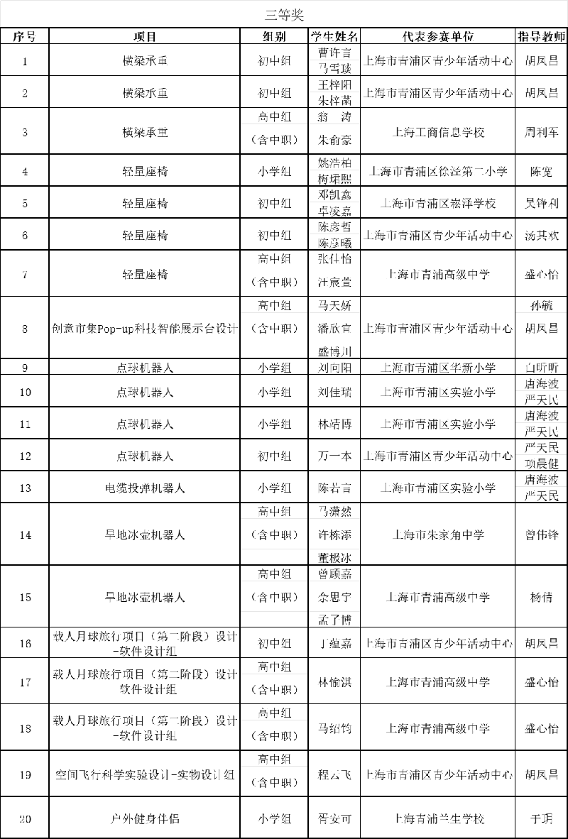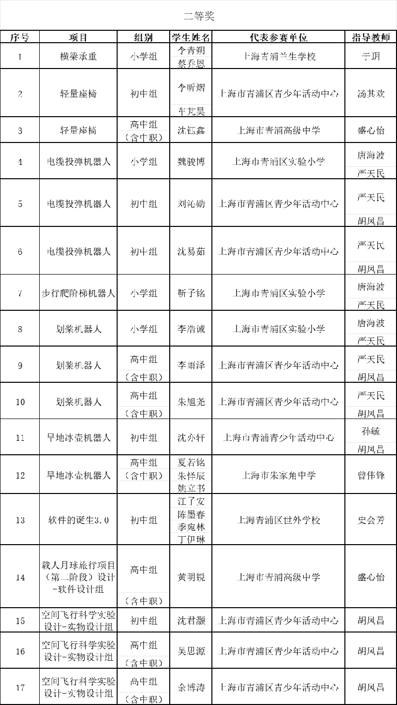 在青浦区青少年活动中心的精心组织下,我区选派出54支队伍、90名学生参加了本次大赛。区代表队凭借卓越表现创下历史最好成绩,以团体优胜奖第三名的优异战绩载誉而归。全区共有45支参赛队伍荣获奖项,其中包括一等奖8项、二等奖17项、三等奖20项,获奖成绩实现突破性增长。
