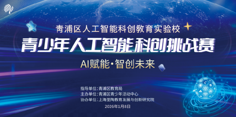 为积极推动“科技强国”战略落地,加快教育数字化转型,培育适应时代发展的创新型人才,2026年1月8日,由青浦区青少年活动中心主办、上海圣陶教育发展与创新研究院协办的“青少年人工智能科创挑战赛”在青浦区青少年活动中心成功举办。本次赛事以“AI赋能·智创未来”为主题,汇聚庆华小学、豫英小学、上师大附属青浦实验学校、华新中学、崧泽学校五所人工智能科创教育实验校的众多优秀学子,共同呈现了一场融合科技创新与智慧竞技的科技盛会。