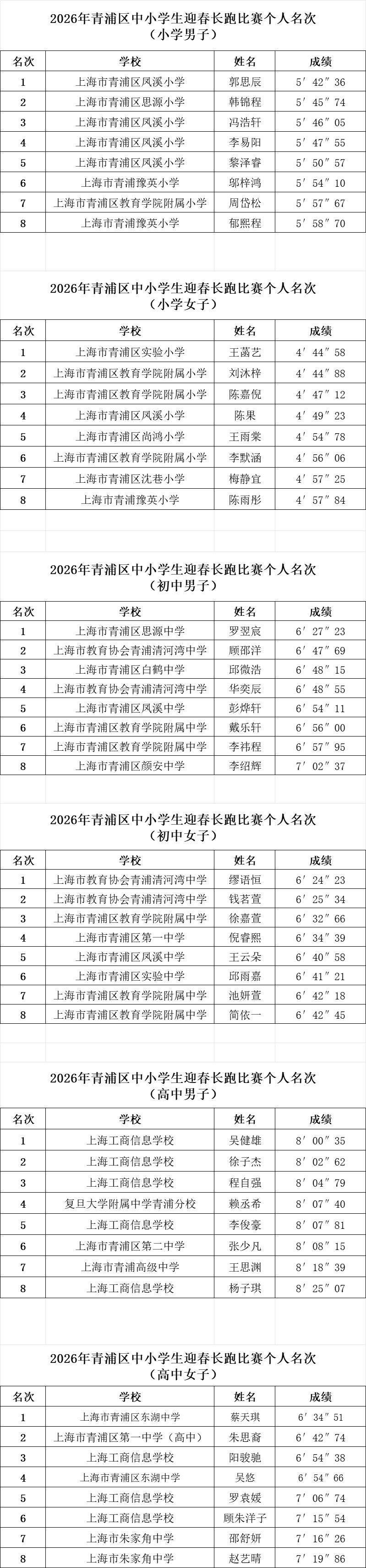 经过激烈角逐,小学组女子1200米、男子1600米;初中组女子1600米、男子2000米;高中组女子1600米、男子2400米,男女合计团体总分和个人名次产生。