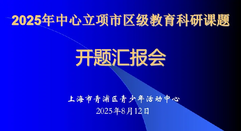 青浦区青少年活动中心2025年上海市校外课外、青浦区教育科研立项课题开题报告会于2025年8月12日下午在中心底楼会议室顺利举行。本次开题会特邀请上海市科技艺术教育中心正高级教师葛智伟、上海市特级教师郭德峰、区青少年活动中心副高级教师汤其欢三位专家老师前来为课题进行开题指导。相关课题负责人、课题组成员代表等老师一起参加了此次开题会。