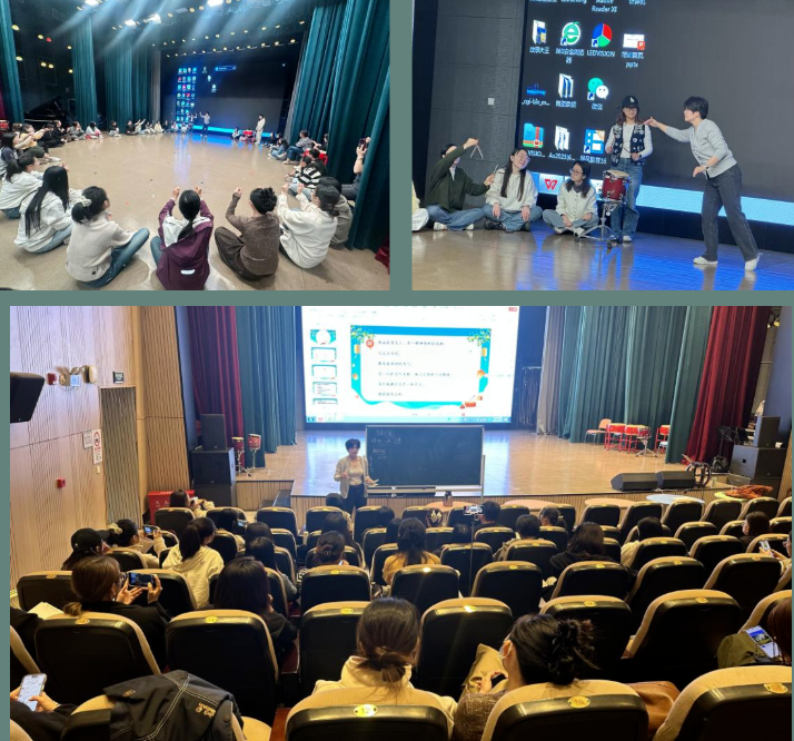 本次培训的第一部分为讲座。在讲座中,顾老师带领大家回顾了奥尔夫音乐教学法的核心理念,强调了其“整体艺术”的教育风格与“原本性音乐教育”的融合,启发教师将音乐与舞蹈、戏剧等进行创造性融合,设计综合性、体验式的教学活动,推动本土化教学实践。